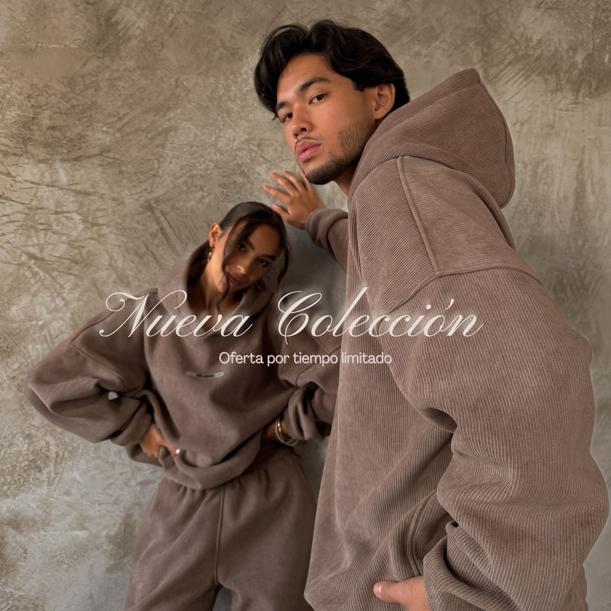 Conjunto compuesto por sudadera con tejido de punto gofrado y pantalones de pierna recta.
